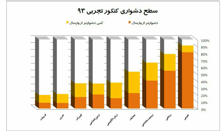 امسال چه در رشته ریاضی و چه تجربی دروس ریاضی و شیمی سخت تر از سال گذشته طرح شدند .